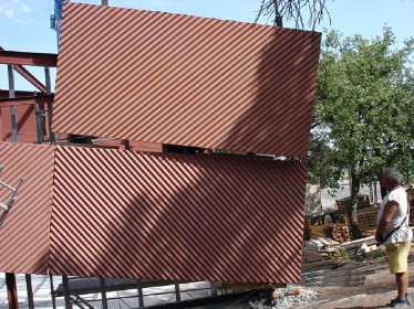 La fijación delos paneles de la fachada se realizó mediante anclajes galvanizados soldados a la estructura metálica del edificio.